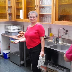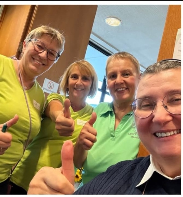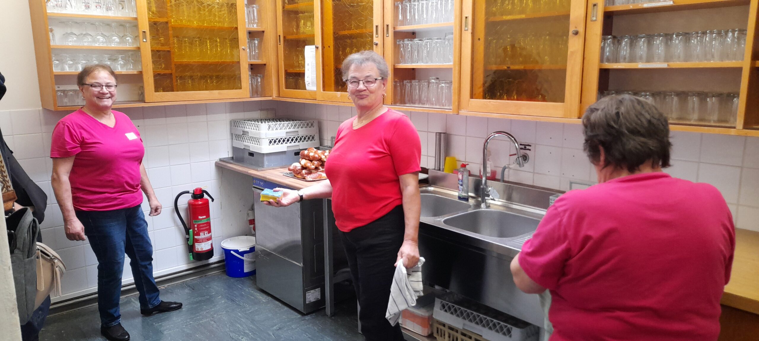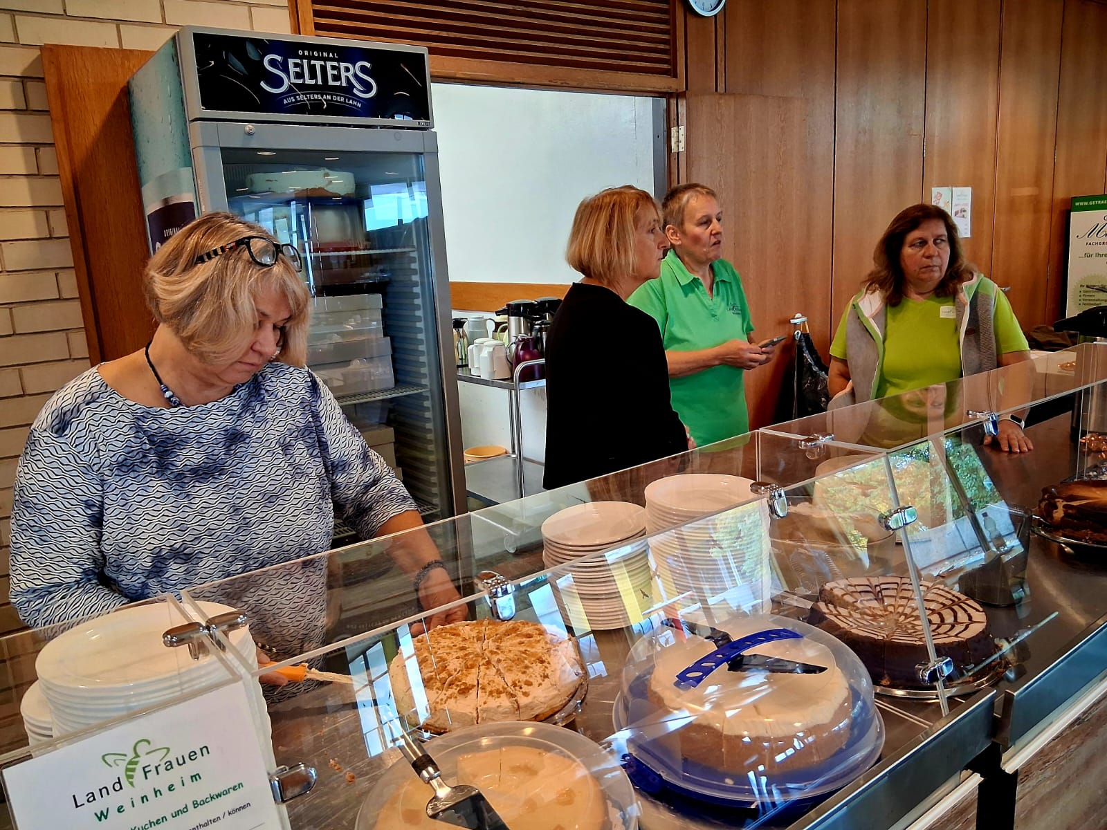 Gegen 11:30 Uhr kamen weitere LandFrauen hinzu, und zum gemeinsamen Mittagessen wurden Pizzen bestellt. Danach begann die letzte Vorbereitungsphase: Kuchen schneiden, Kaffee kochen und alles für die ankommenden Gäste bereitstellen.