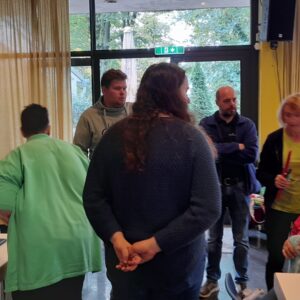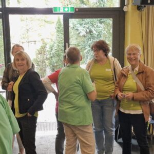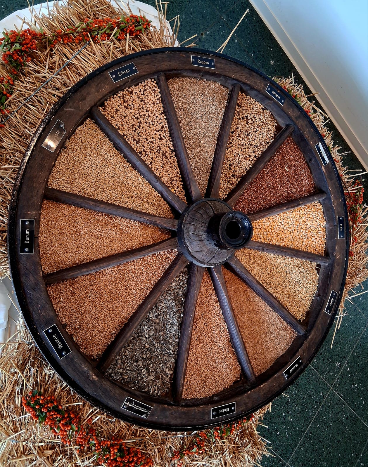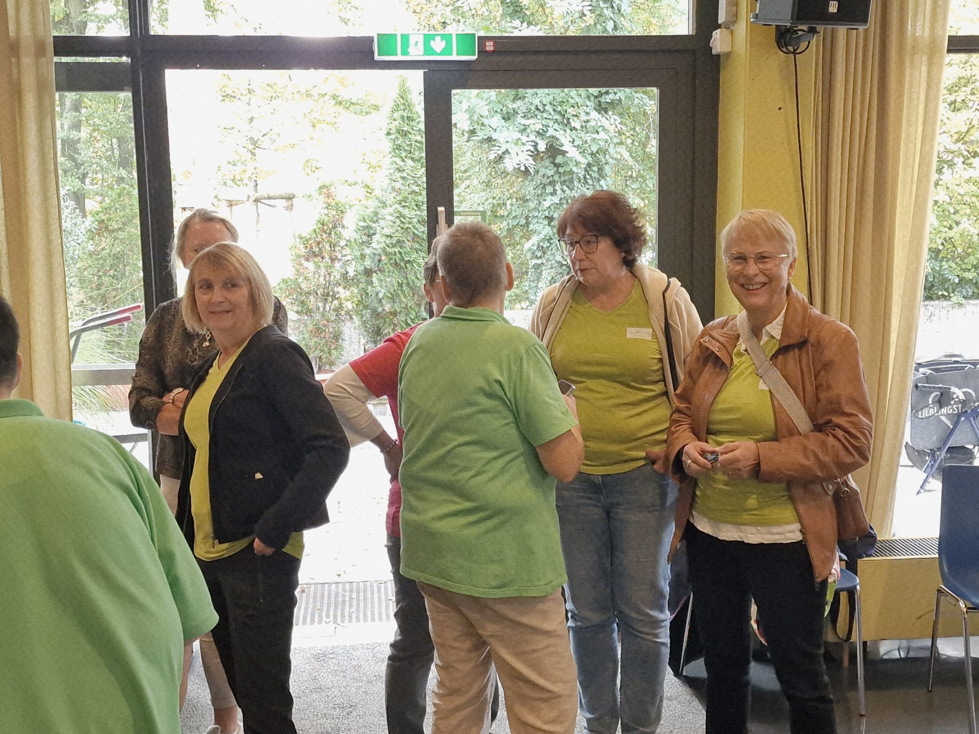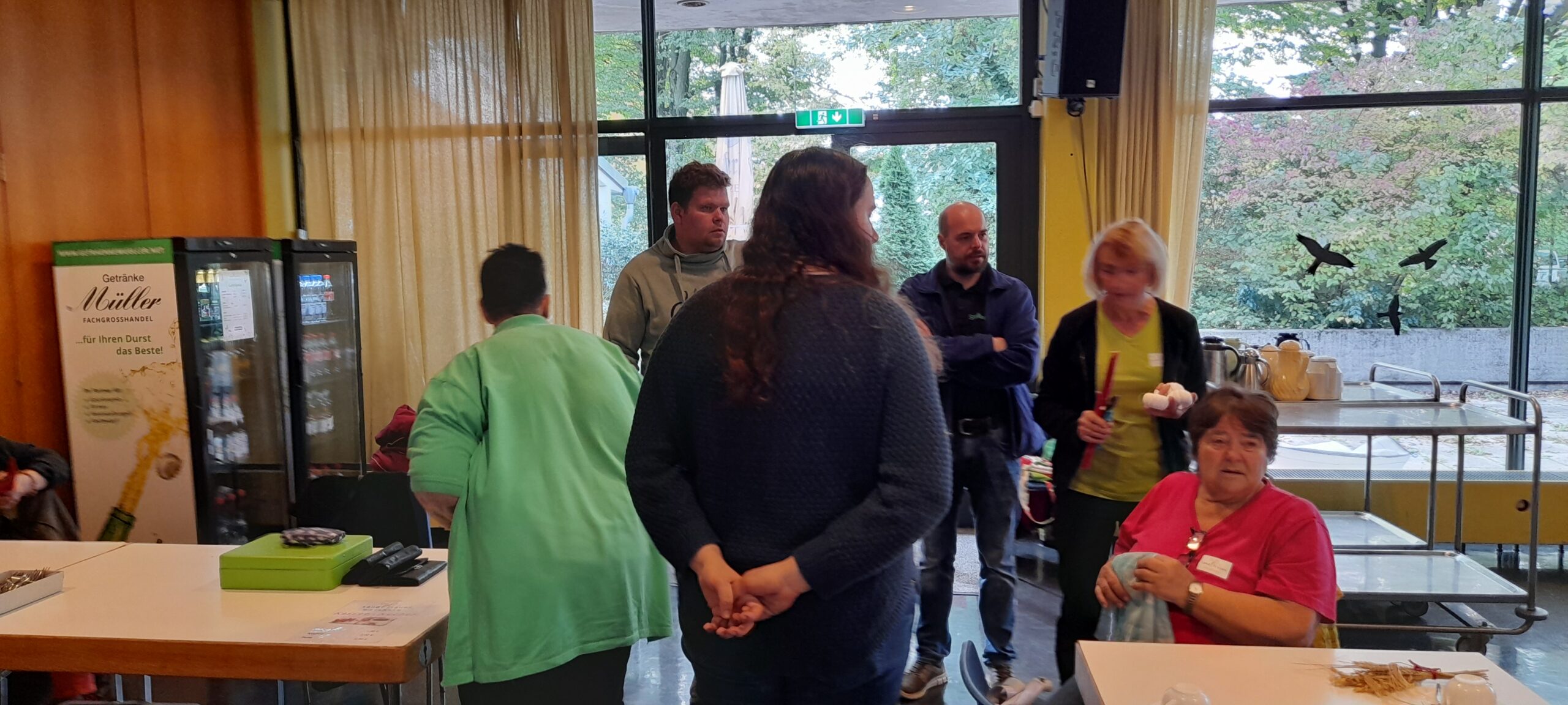 Ab ca. 13:15 Uhr trafen die Besucherinnen und Besucher ein, und der Saal füllte sich zusehends. Herr Berger vom Bauernverband brachte das traditionelle Ernte Rad sowie Informationsmaterial mit. Die LandFrauen kümmerten sich um die Kaffeeausgabe, während Kuchen und Getränke von den Gästen selbst geholt werden konnten. Die Ehrengäste wurden herzlich begrüßt und zu ihren Plätzen begleitet.