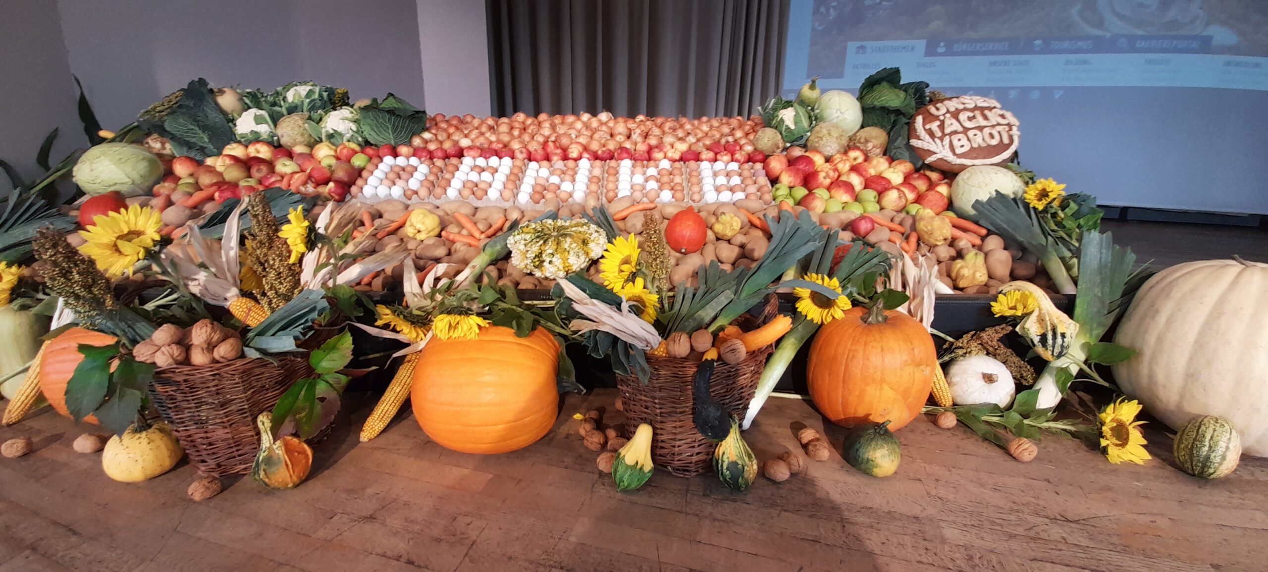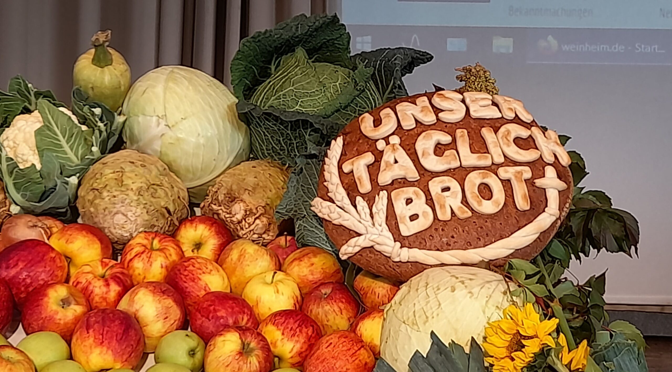 Die Erntegaben wurden im Anschluss an die Tafel Weinheim übergeben – symbolisch begleitet von der Übergabe des Erntebrotes durch Doris Jungmann.