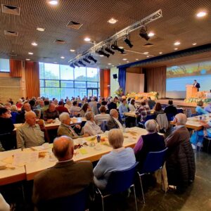 Musikalisch bereicherte der Chor Salto Vocale das Fest mit vier beeindruckenden Liedbeiträgen, bevor Schwester Teresa Zukic mit ihrem Vortrag „Lebe – Liebe – Lache – und sag den Sorgen gute Nacht“ das Publikum begeisterte. Mit einer humorvollen Mischung aus Anekdoten, persönlichen Erlebnissen und nachdenklichen Impulsen schaffte sie es, das Thema „Sorgen“ auf eine erfrischend positive Weise zu beleuchten. Sie vermittelte eindrucksvoll, wie es gelingen kann, die Macht belastender Gedanken zu durchbrechen und wieder zu innerer Freude und Leichtigkeit zu finden – stets mit dem Blick auf das Licht Gottes, das unseren Alltag erhellen kann.