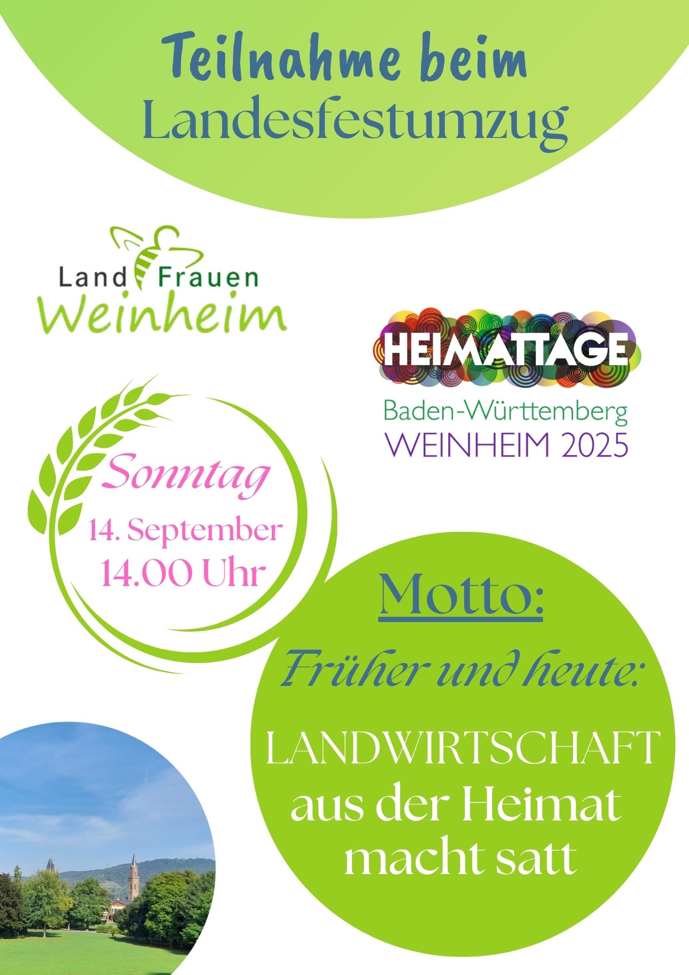 Die LandFrauen Weinheim nehmen am Landesfestumzug der Heimattage Baden-Württemberg 2025 teil.